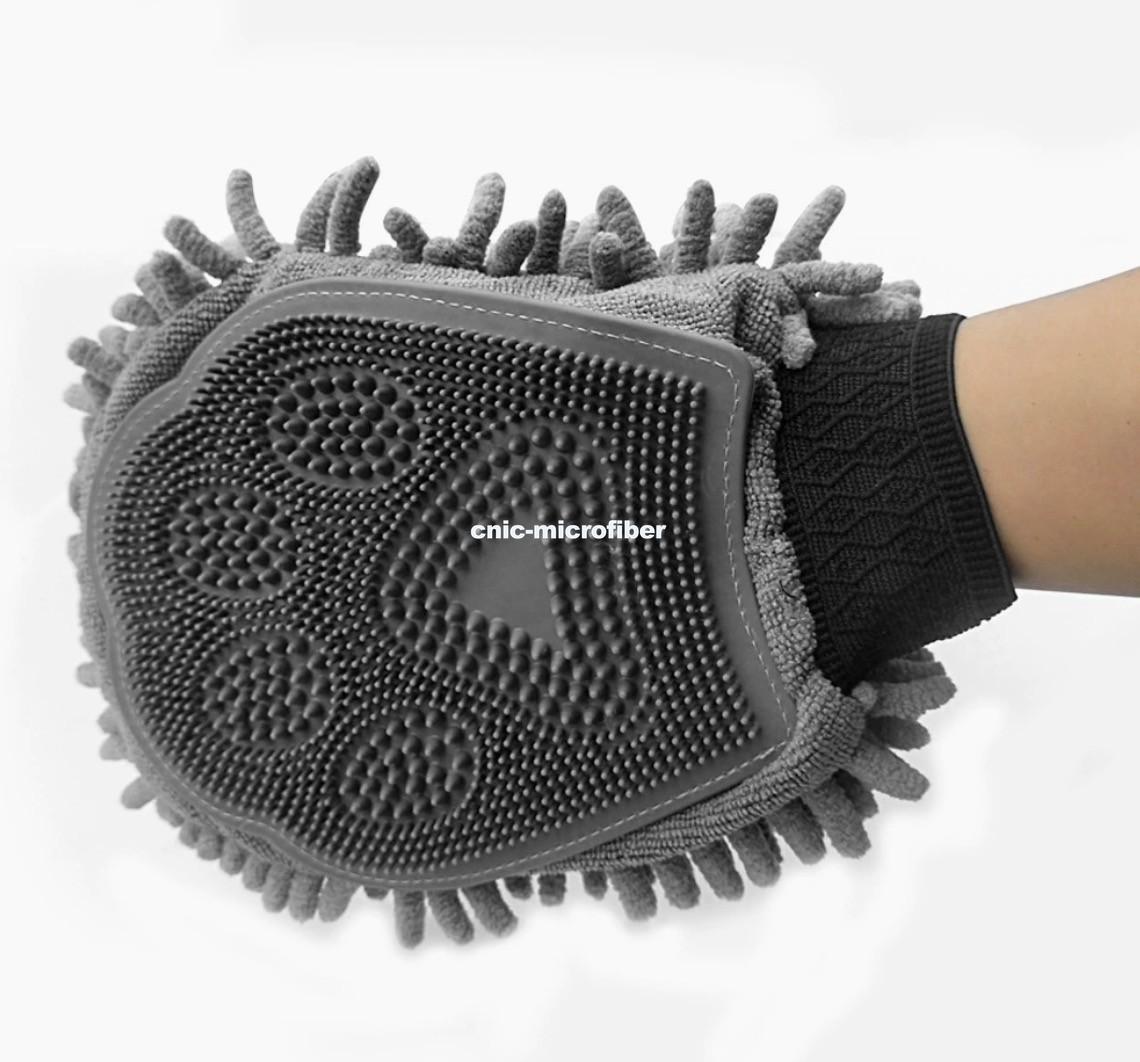 OEM ODM Quick Drying Chenille Bath Grooming Mitt Glove Brushes for Cats Dogs Absorbent Microfiber with Rubber Stocked Feature |
